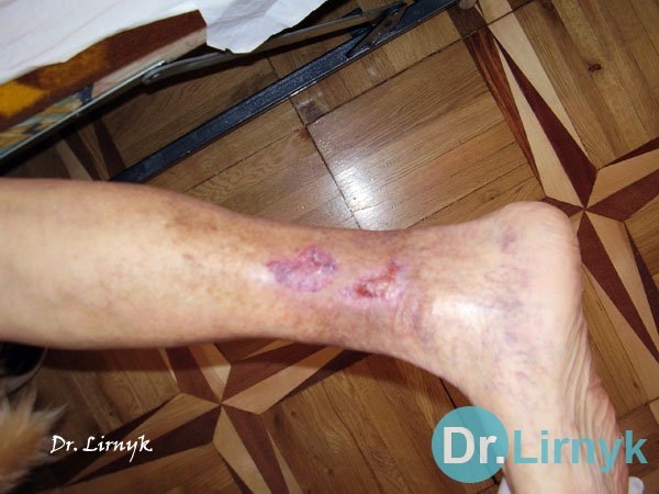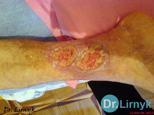 Trophic ulcer of the right foot - photos before and after treatment. The patient is 79 years old. At the time of admission to hospital ulcer did not heal for 3 years.