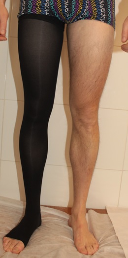I клас компресії. Так само як і лікувальний компресійний трикотаж (гольфи, панчохи, колготки) призначений для нижніх кінцівок з тиском на рівні щиколоток 18-21 мм рт.ст. Його застосовують на ранніх стадіях хронічної венозної недостатності (синдром «важких ніг», схильність до набряків, ретикулярний варикоз, телеангіектазія), при функціональній флебопатії, для профілактики венозної недостатності під час вагітності, а також для профілактики тромбозу глибоких вен.